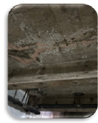 Degradação Estrutural (Armaduras e Concreto): A passagem constante de fluidos pelas lajes causa a lixiviação do concreto, manifestando-se visualmente na formação de estalactites no teto (como em garagens de subsolos) e culminando na perigosa corrosão das armaduras de aço, que ficam expostas e oxidadas, colocando em risco a estabilidade da estrutura.